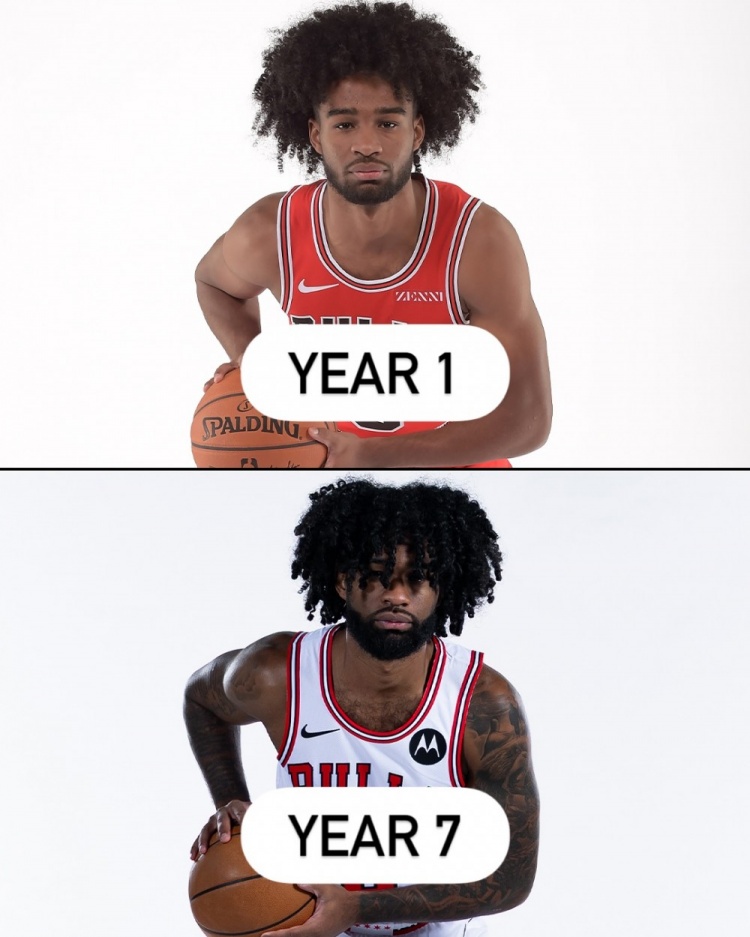 公牛队晒全队今昔对比:武切维腮帮子越来越大 科林斯8年如一日帅
