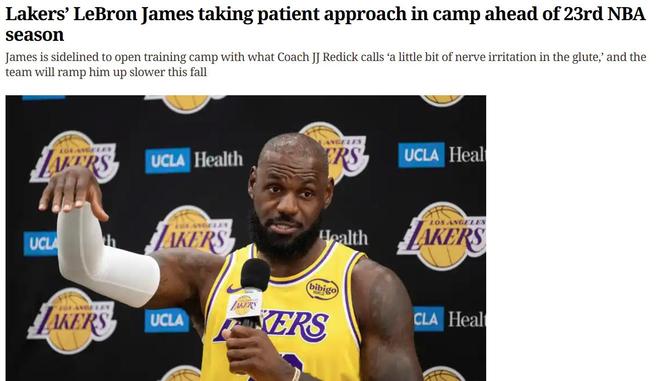 主帅雷迪克在训练结束后透露了这一消息,表示詹姆斯臀部还有一点神经刺激的问题,因此缺席了训练营第一天的训练。