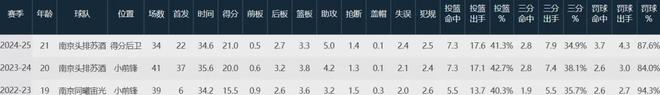 出生于2003年12月25日的林葳,年仅21岁,身高1米91的双能卫,上赛季在CBA效力同曦队,打成了本土得分王,常规赛场均21分3.3板5助1.4断,三项命中率41.3%、34.9%和87.6%;季后赛则是场均30.5分6.5板11助1.5断,三项命中率43.5%、26.3%和94.1%。
